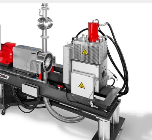 上階機(jī)為JWP系列平行同向雙螺桿混煉機(jī)。利用雙螺桿的高速、高剪切、強(qiáng)混合優(yōu)勢(shì),使物料充分完成塑化混合,由于無機(jī)頭背壓,使得我們針對(duì)不同物料靈活的排列螺桿組合,達(dá)到物料混合較好狀態(tài)。